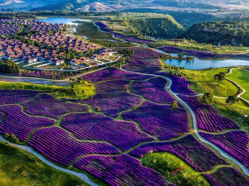 - 特色:百畝馬鞭草、繡球花、百合花田,設(shè)鋼琴藝術(shù)裝置、秋千等互動設(shè)施。