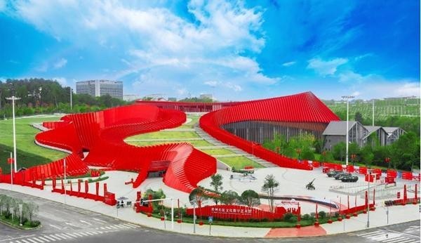 貴州長征文化數(shù)字藝術(shù)館(紅飄帶)建筑外觀,該建筑以“地球的紅飄帶”為主題,外觀設(shè)計參考“中央紅軍長征路線圖”。