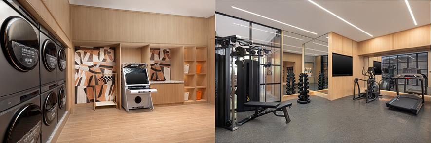 暢享“智慧”家居也是Atwell筑格酒店的重要特色之一。酒店配備全屋智能操控系統(tǒng),支持語音控制與一鍵客服,賓客可輕松調(diào)節(jié)溫度與燈光,使用智能家電,并配備隨心調(diào)節(jié)高低的升降桌以滿足不同場景需求。浴室設(shè)有熱毛巾架,電視支持智能投屏,賓客可獲得更順暢的居停體驗(yàn)。酒店還設(shè)有“洗躍”健身洗衣空間,配有座位、游戲機(jī)等設(shè)施,打造具備洗衣和健身功能的社交休閑區(qū),讓入住體驗(yàn)更加豐富自在。