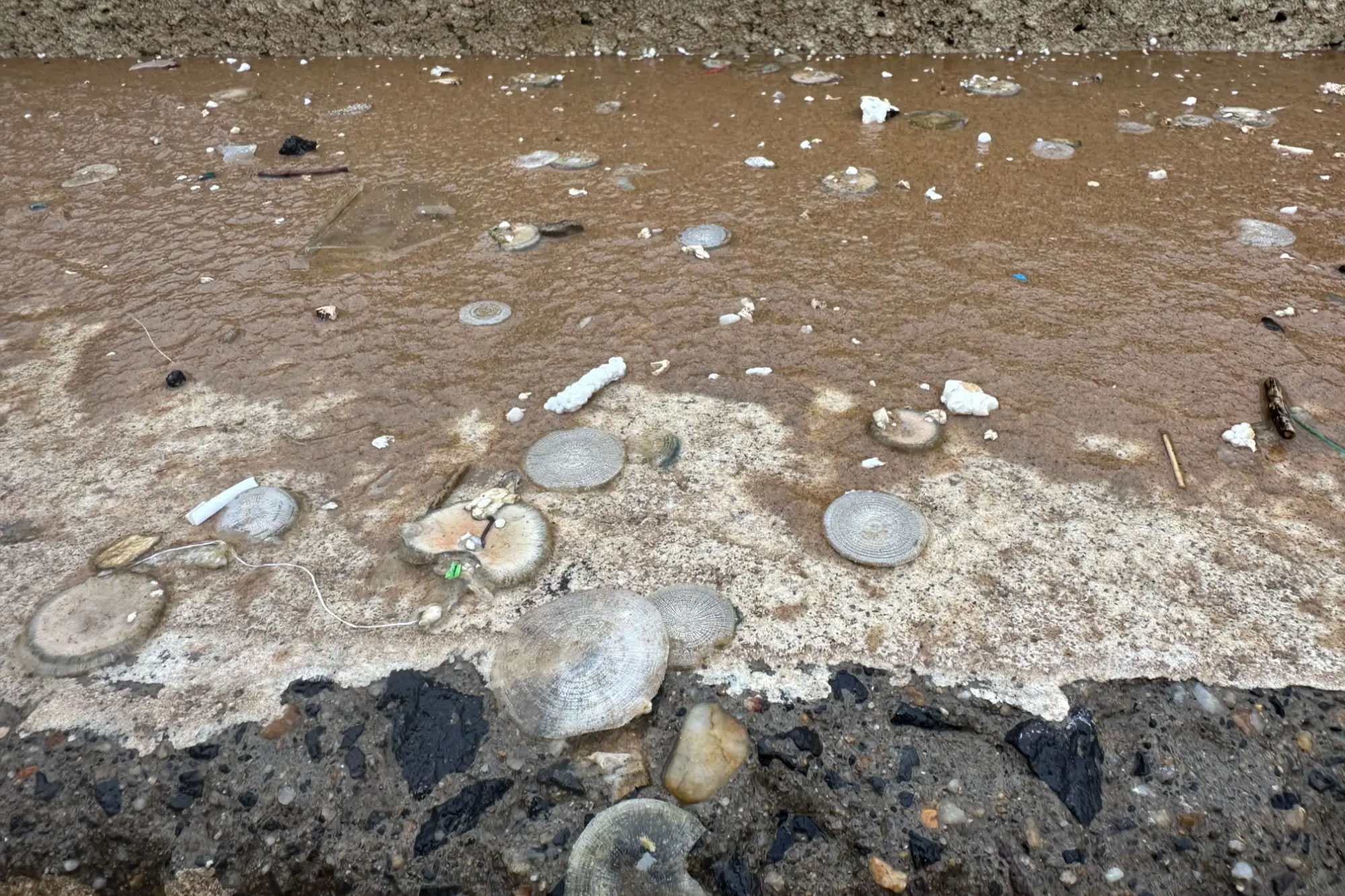央廣網(wǎng)?10月23日消息(記者林韋瑋 付美斌 實習(xí)記者郭心怡)近日,?谑形骱0冻霈F(xiàn)大量形似“硬幣”的生物,這些生物“緊密鑲嵌”在沙灘上,遠(yuǎn)遠(yuǎn)望去,宛如無數(shù)枚銀色硬幣鋪灑在海岸線上。經(jīng)專家證實,該生物為銀幣水母,具有一定弱毒性,接觸人體可能引發(fā)灼痛、紅斑或皮疹,游客在海邊游玩時應(yīng)避免主動觸碰。