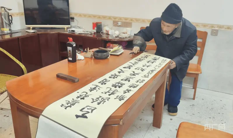 在漚江鎮(zhèn)上東村,101歲的何茂基正站在案前揮毫潑墨,握筆穩(wěn)穩(wěn)當(dāng)當(dāng),行筆蒼勁有力。這位世紀(jì)老人的日常生活,正是桂東長壽現(xiàn)象的生動(dòng)體現(xiàn)。