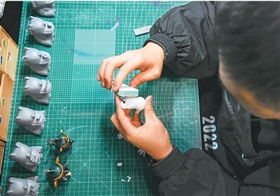 一名文創(chuàng)產(chǎn)品策劃運營師在打磨產(chǎn)品模型。