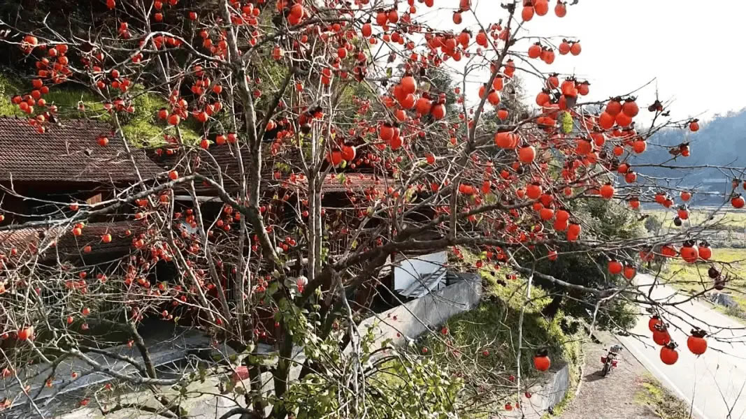 樂安鋪鄉(xiāng)聯(lián)豐村的山林同樣熱鬧非凡,蜿蜒山路旁的槭樹、楓香樹層層疊疊,紅褐與金黃交織成絢爛色塊,與錯落分布的農(nóng)家院落相映成趣。隨著初冬的寒意悄然降臨,聯(lián)豐村的柿子樹“燃”起一片熱烈的“紅火”,熟透的柿子,宛如一盞盞喜慶的紅燈籠,將山村裝點(diǎn)得明艷動人,在陽光輕撫下,橙紅的柿子透著誘人光澤,與遠(yuǎn)處的山林相襯,色彩斑斕。游客們或手持相機(jī),定格“柿”景,歡聲笑語在鄉(xiāng)村回蕩。引得游人紛至沓來,沉醉于這獨(dú)特的田園冬韻之中。