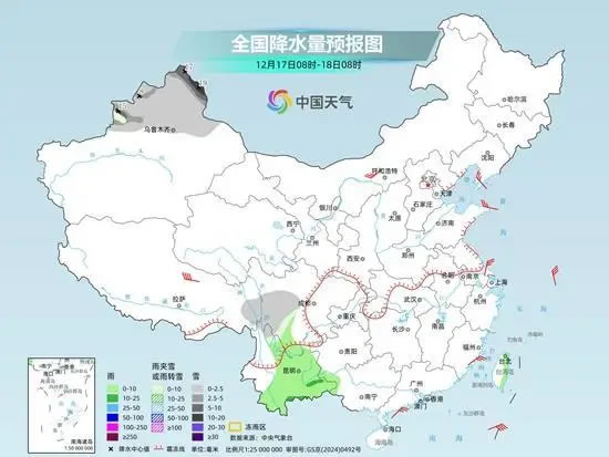 明天,內蒙古東北部、黑龍江西北部、新疆北疆北部及南疆山區(qū)、甘肅河西等地部分地區(qū)有小到中雪或雨夾雪,其中,內蒙古東北部、新疆沿天山地區(qū)和伊犁河谷等地部分地區(qū)有大到暴雪。云南中南部、廣西西部、廣東東南部、福建東南部、海南島、臺灣島等地部分地區(qū)有小到中雨。